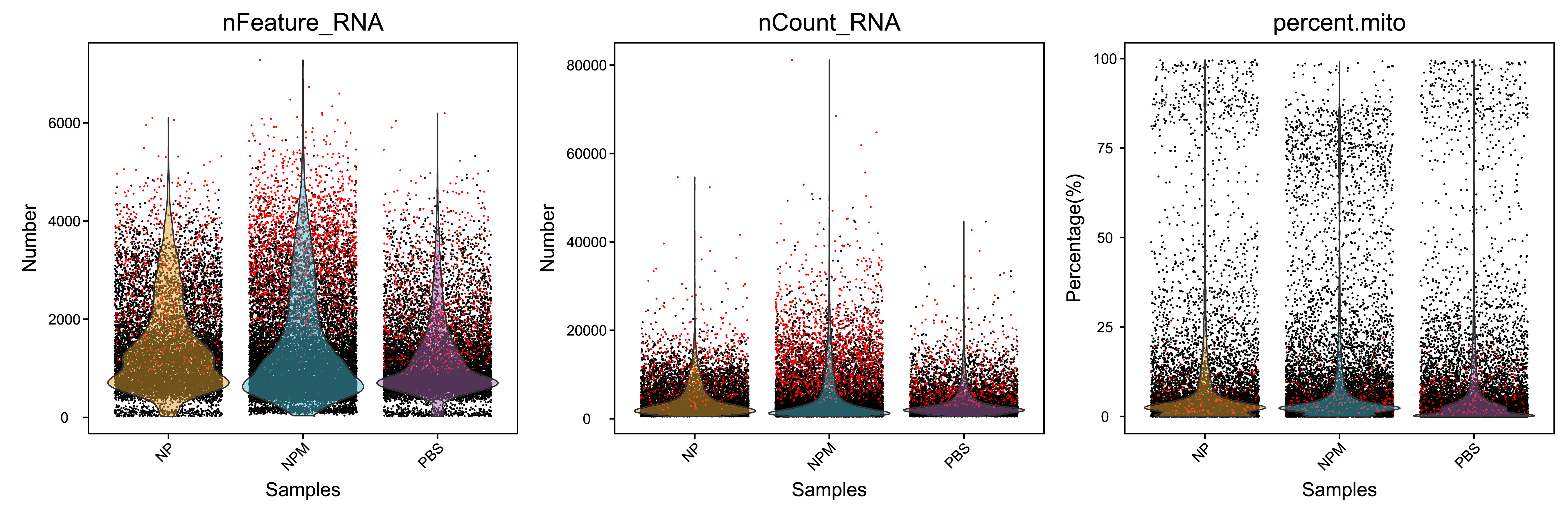 Fig 4-1-3 过滤前后各个样本细胞基本信息的分布图![]() |