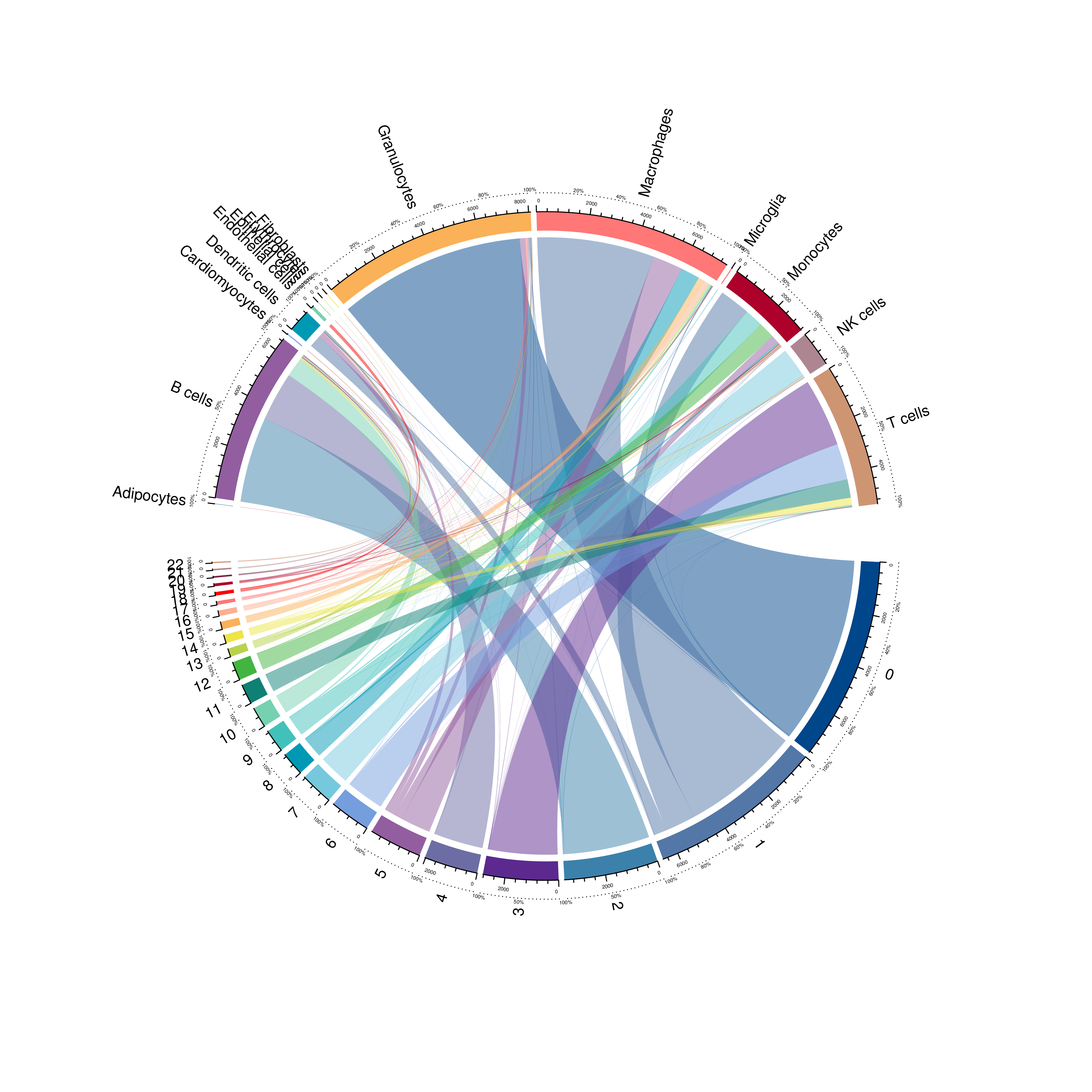 Fig 4-4-6 Seurat分群与singleR细胞鉴定对应circos图![]() |