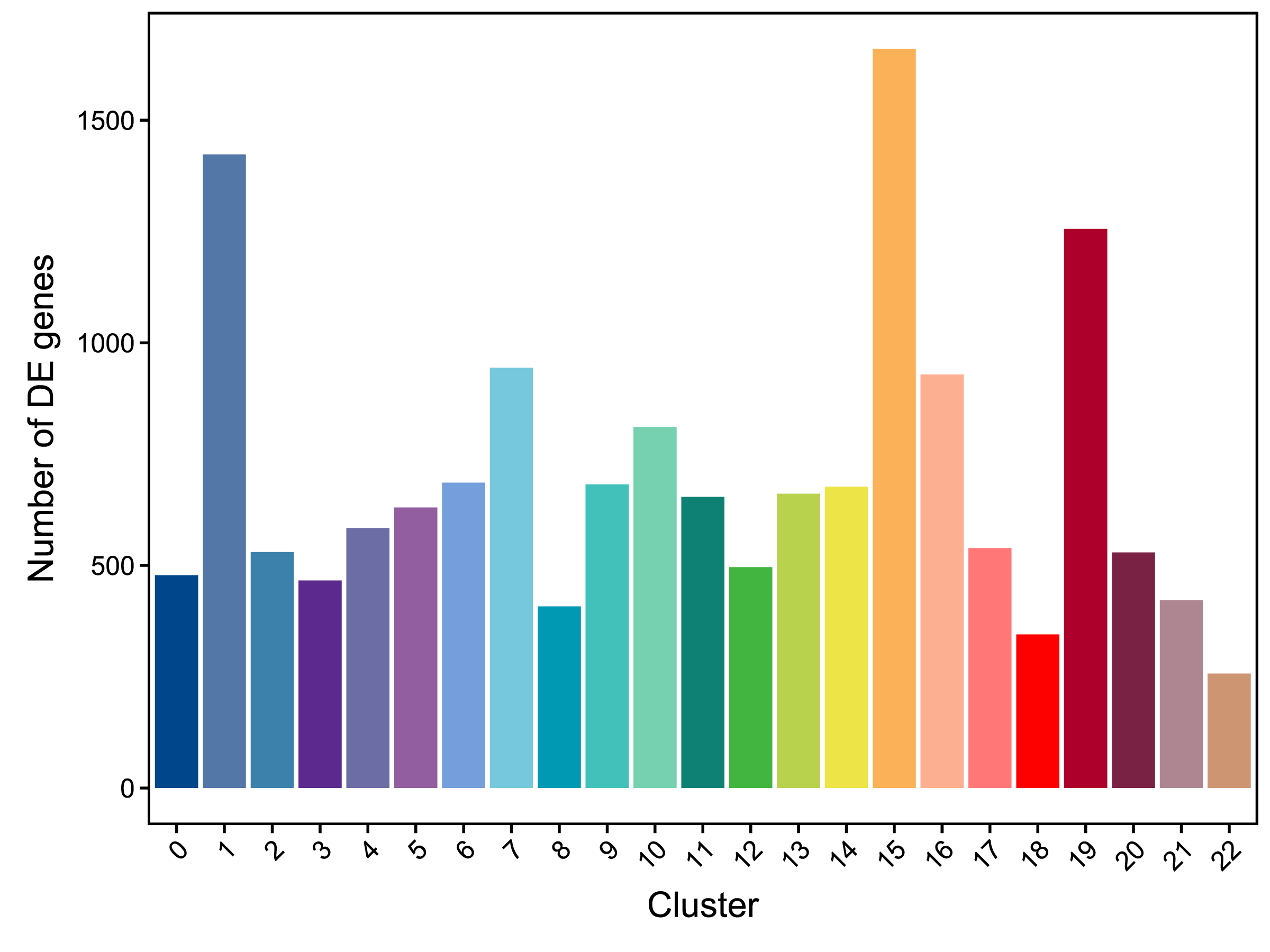 | Fig 5-1-1 各亚群上调基因数量统计柱状图 |