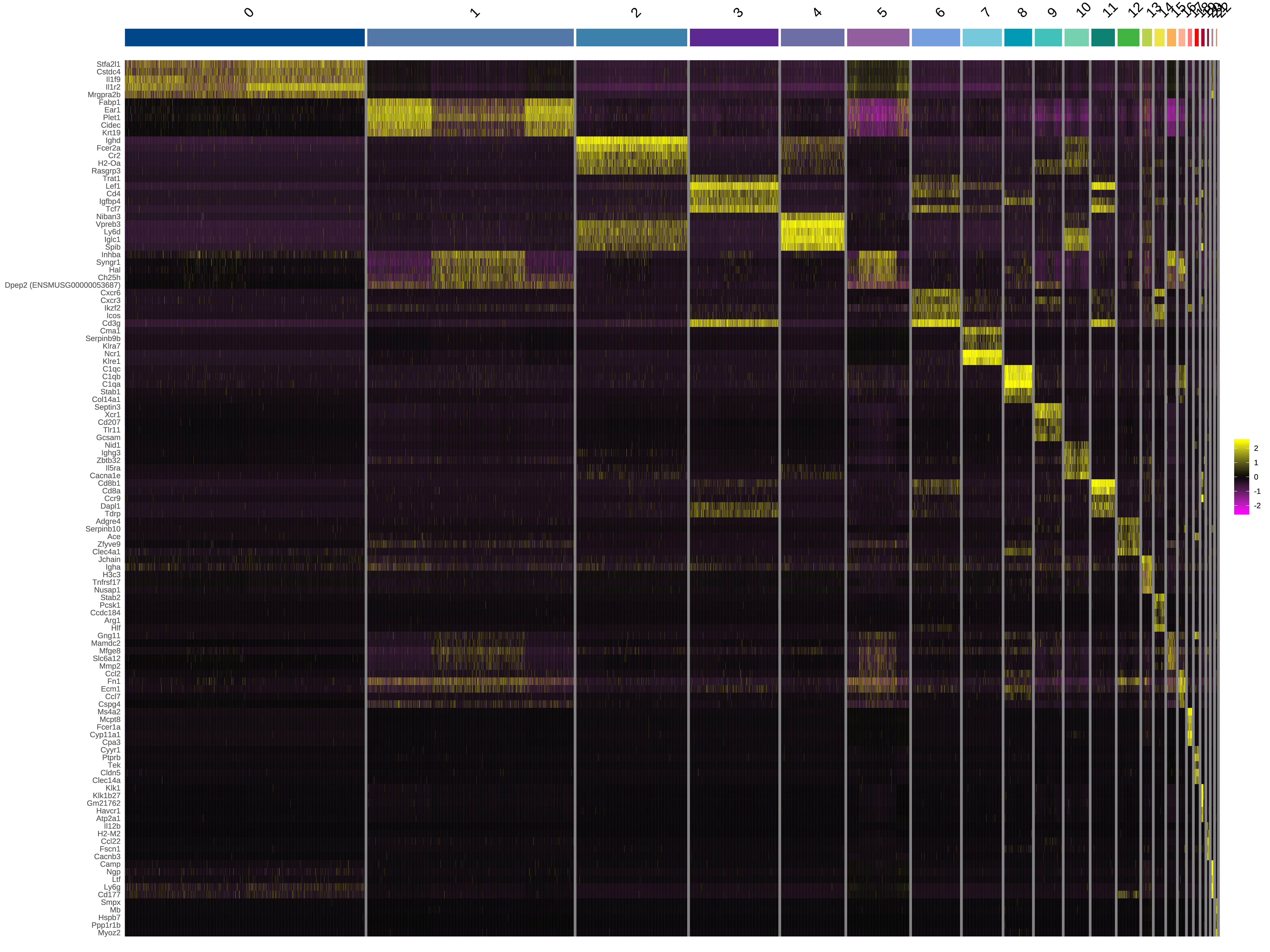 为了了解各个细胞亚群的分子表达特征,我们可以筛选各个细胞亚群上调表达的基因。