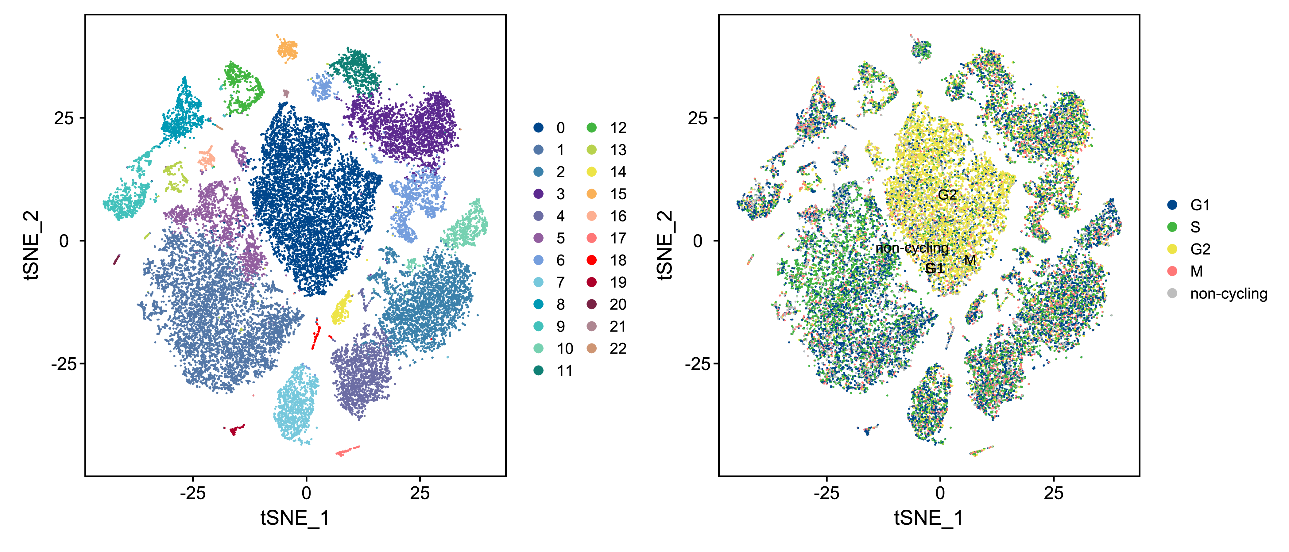 | Fig 9-2-3 不同细胞周期细胞的tSNE分布 |