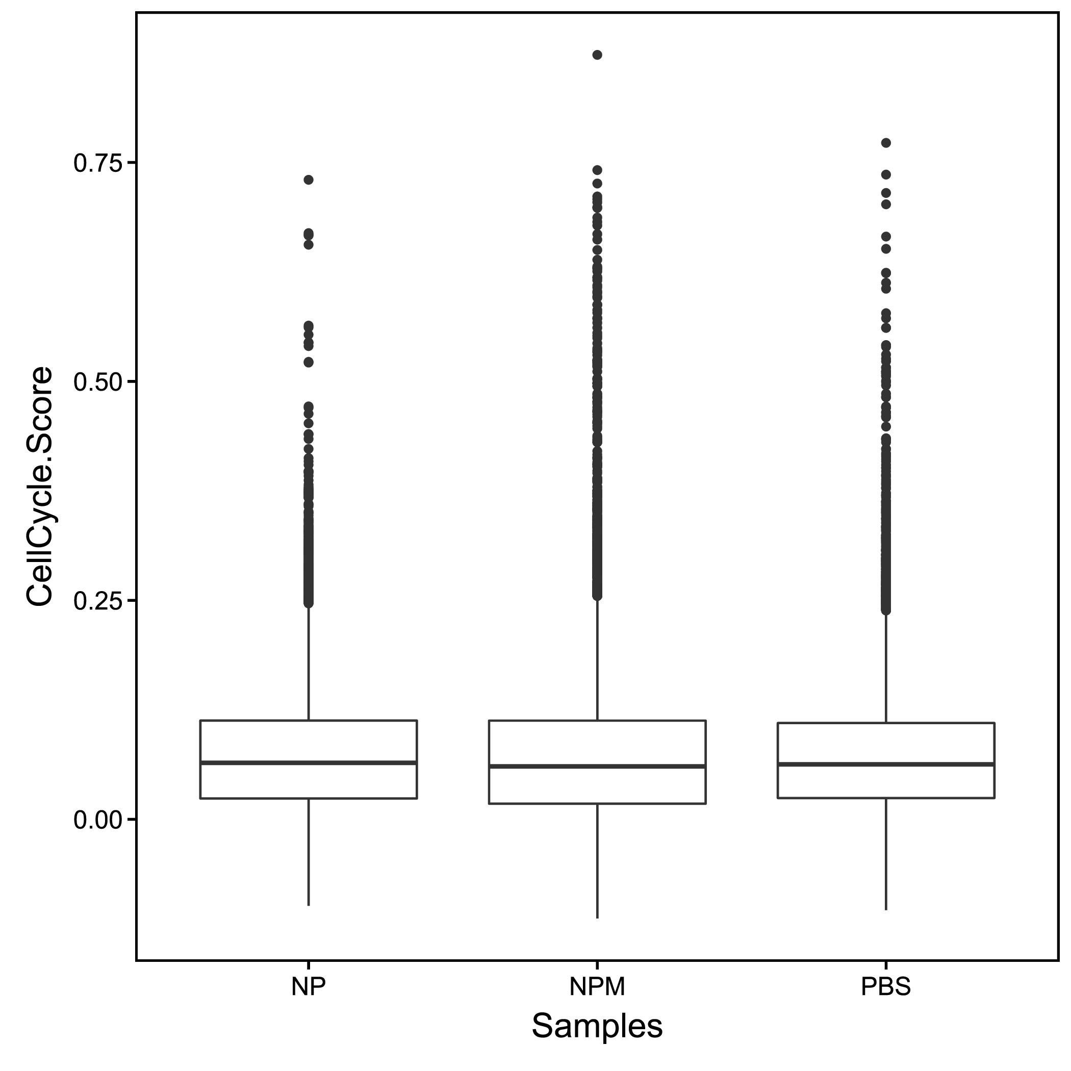 常规样本中,仅干细胞、祖细胞、癌细胞等具备增殖分化潜力的细胞才具有细胞分裂的能力,即处于细胞周期中。我们通过周期蛋白在细胞中的表达情况对细胞所处的细胞周期进行评分,以此直观体现各个样本中的细胞分裂/增殖活性。