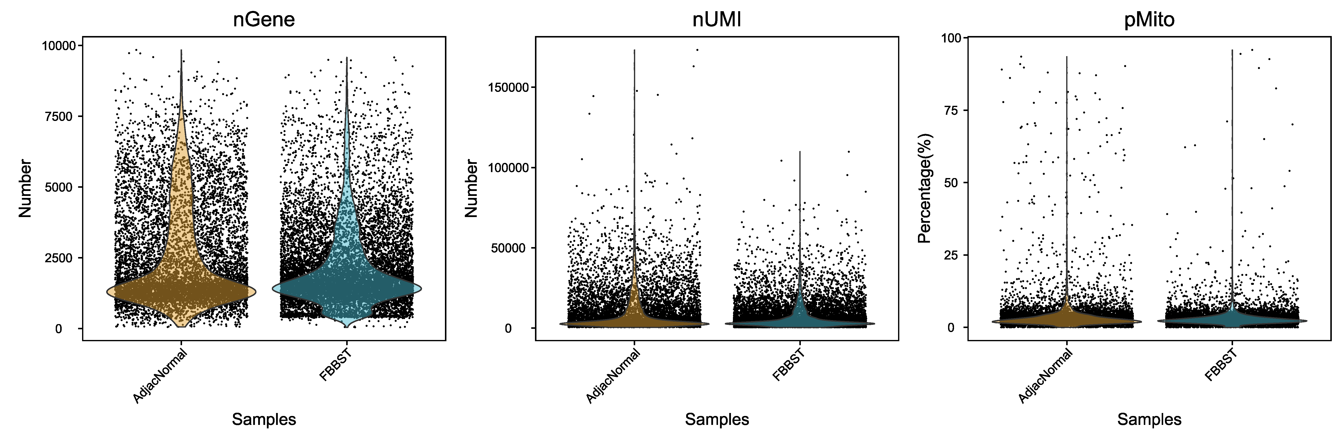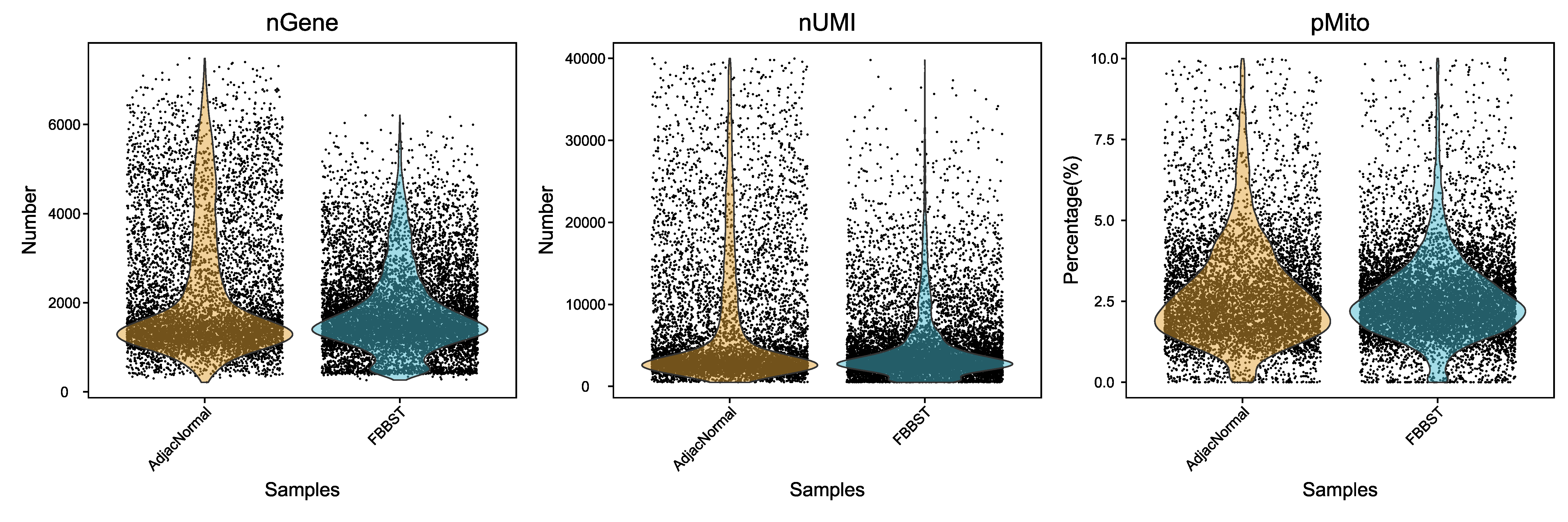 Fig 4-1-1 过滤前后各个样本细胞基本信息的分布图![]() |