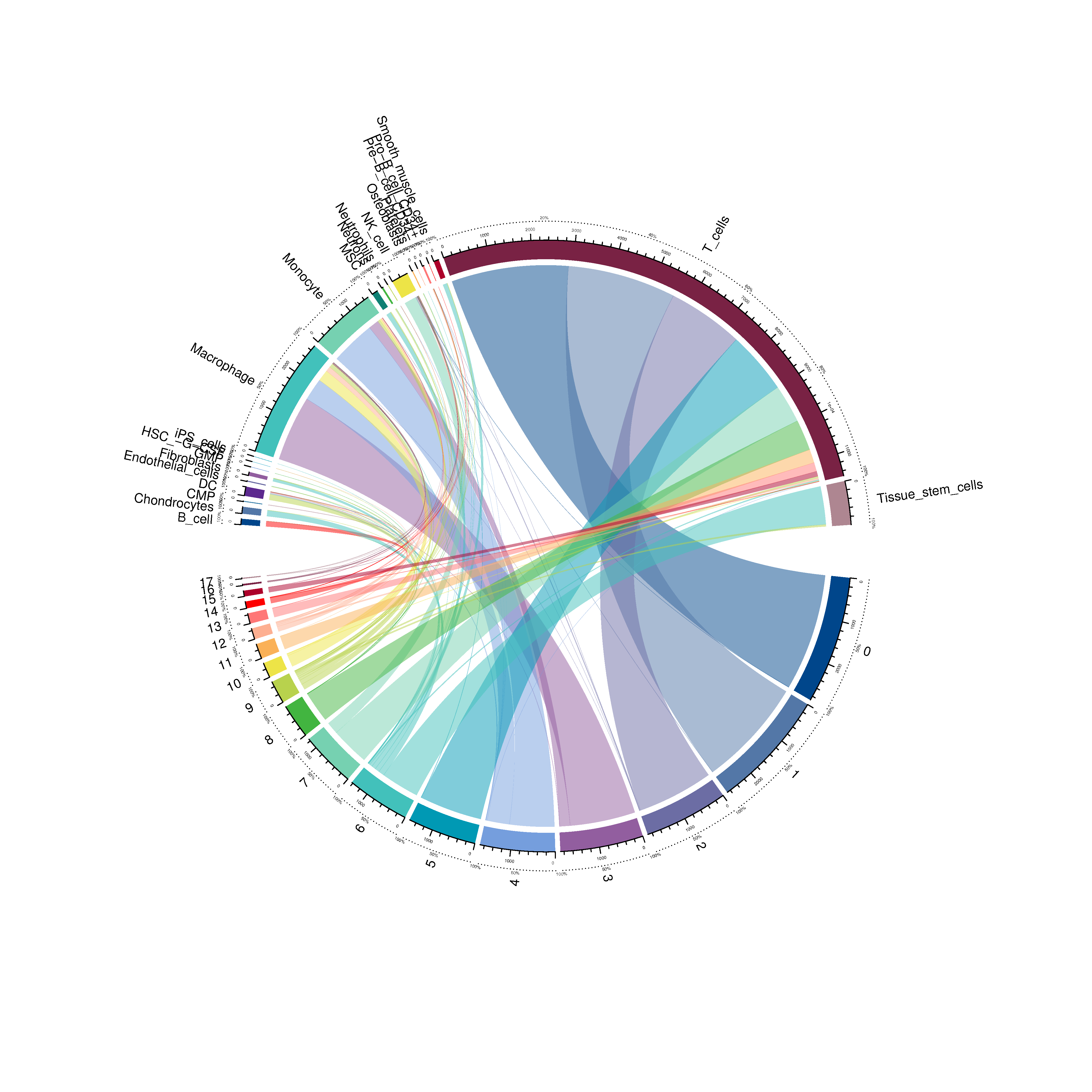 Fig 4-4-6 Seurat分群与singleR细胞鉴定对应circos图![]() |