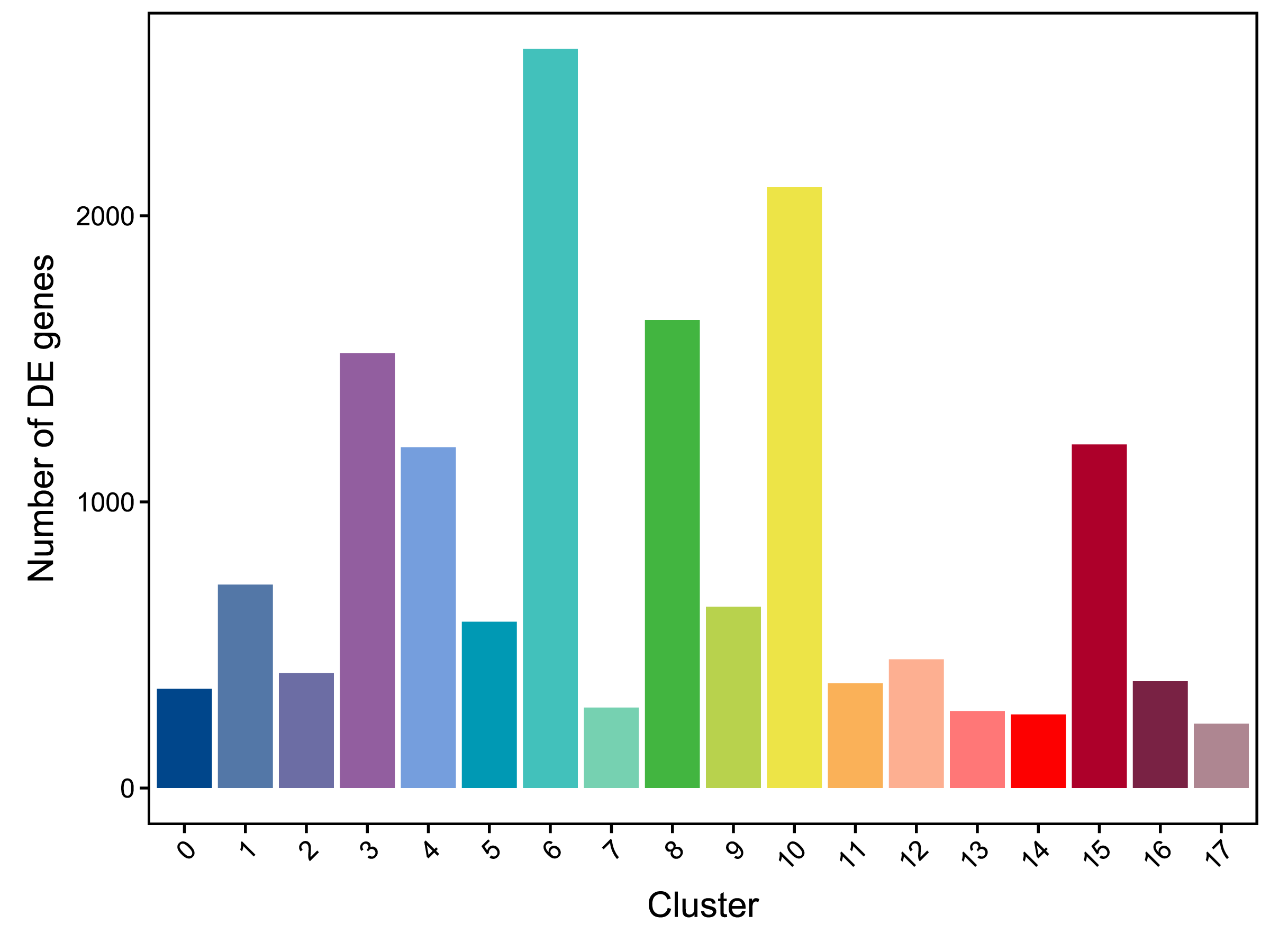 | Fig 5-1-1 各亚群上调基因数量统计柱状图 |