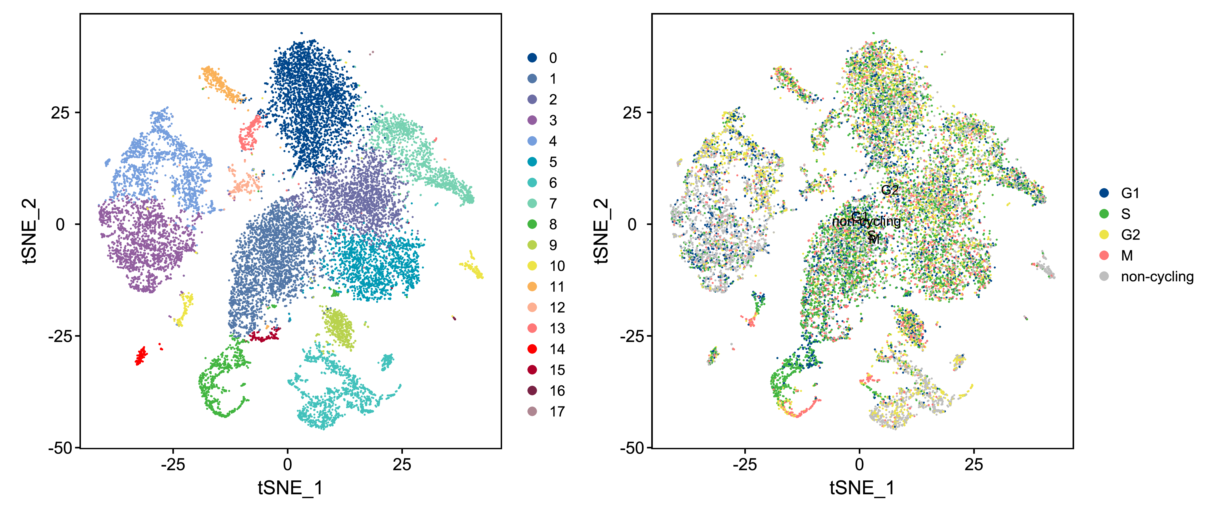 | Fig 9-2-3 不同细胞周期细胞的tSNE分布 |