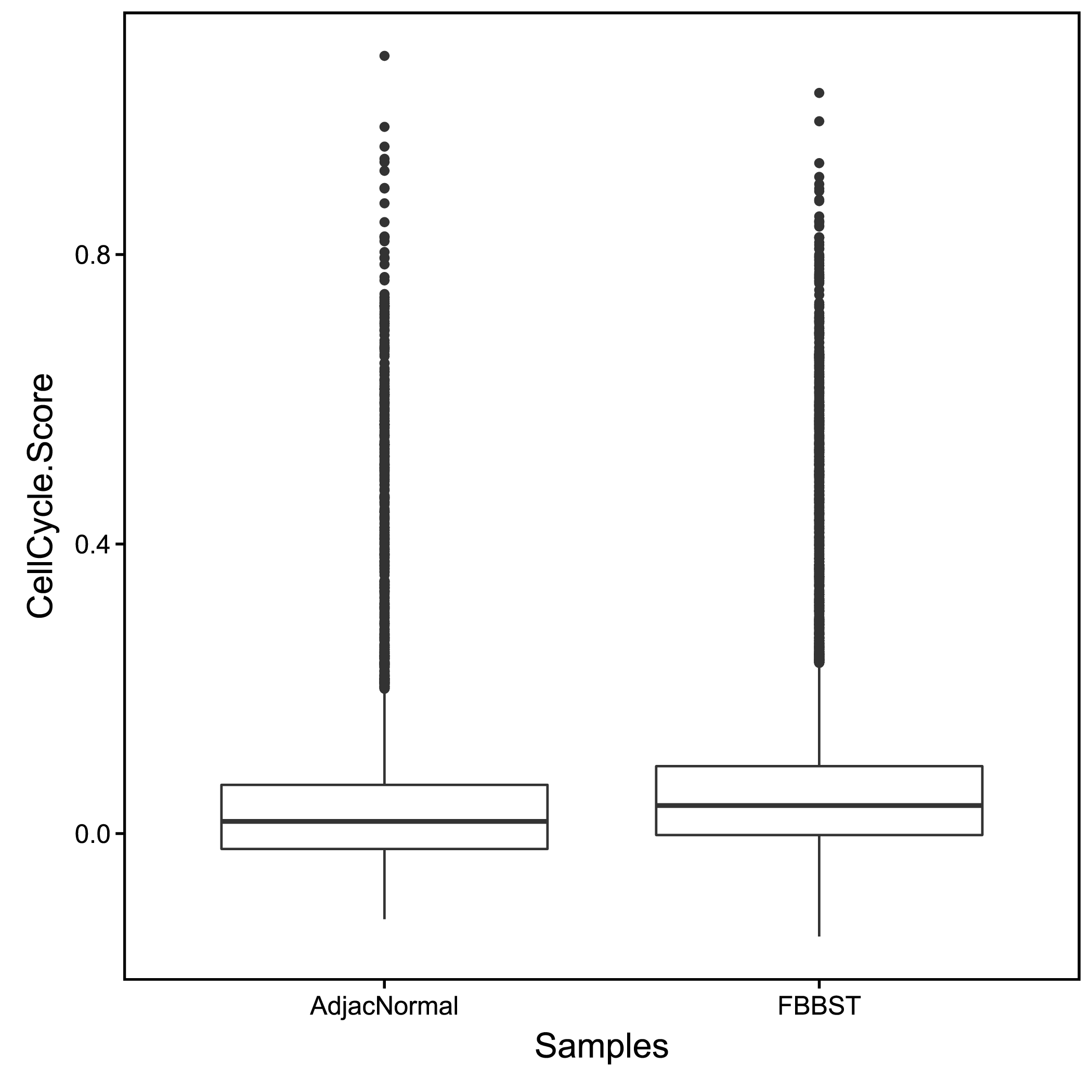 常规样本中,仅干细胞、祖细胞、癌细胞等具备增殖分化潜力的细胞才具有细胞分裂的能力,即处于细胞周期中。我们通过周期蛋白在细胞中的表达情况对细胞所处的细胞周期进行评分,以此直观体现各个样本中的细胞分裂/增殖活性。